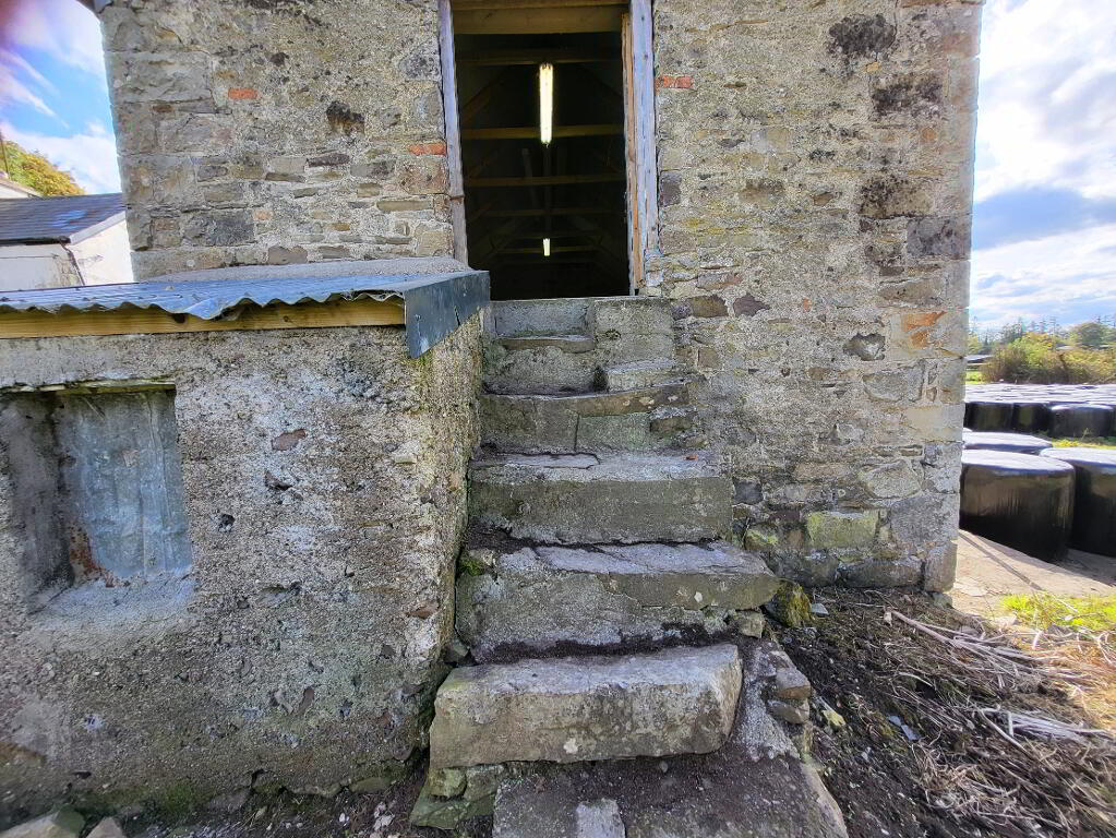 The 2 storey residence is derelict at present, having been last occupied approx 12 years ago. However, it has great potential to be renovated into a vibrant family home again. Derelict house grant / vacant house grant should be obtainable on this house. Beside the house is an old stone granary that has further potential for conversion into residential accommodation as part of the family home or independent apartment / granny flat, etc.